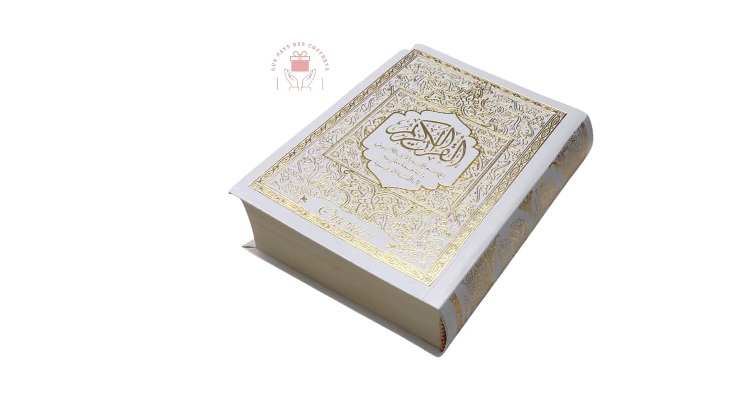 + Livraison OfferteCoran blanc et doré en français arabe et phonétique