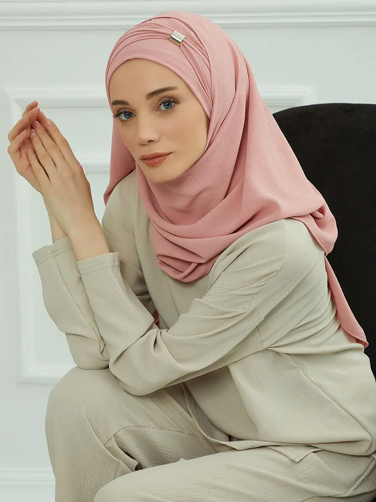 Hijab Rose avec Boucle élégant et respirantHijab Rose avec Boucle élégant et respirant
