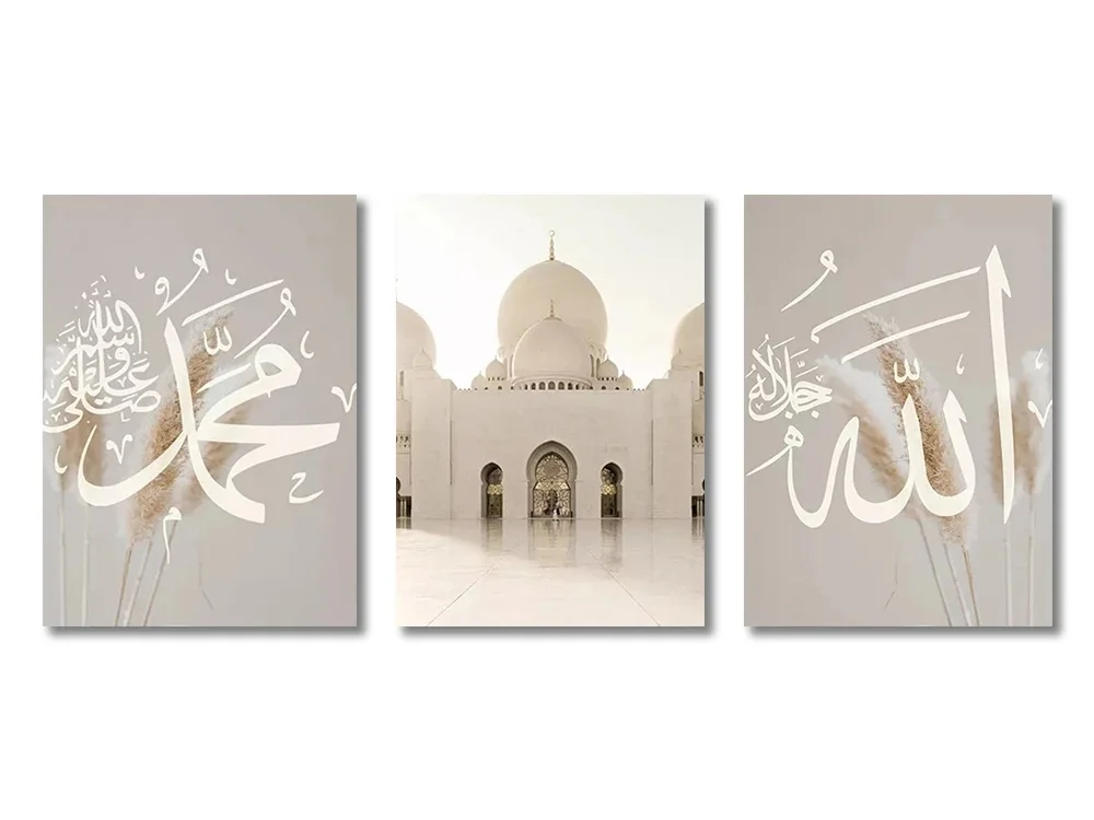 Toiles Ayatul Kursi Beige et Blanc toile 3 pièces – 50x70cm